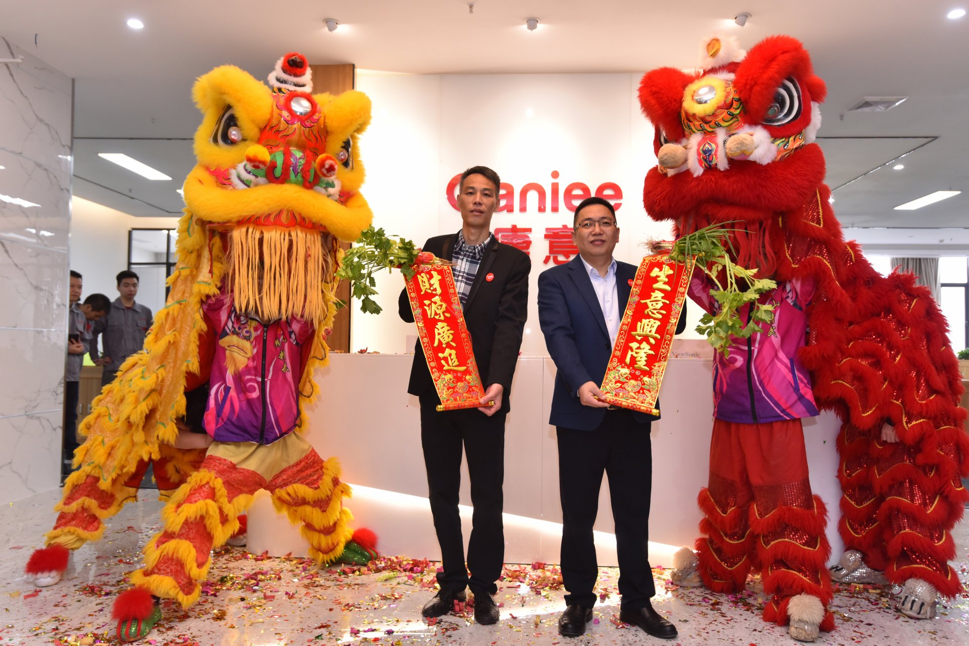 九時零八分,喧天的鑼鼓、雀躍的舞獅,廣東康意喬遷儀式拉開帷幕。 整潔舒適的辦公環境,寬敞明亮、具有現代化氣息的辦公條件,有力地激發了全體員工對公司邁向新高度的信心和力量。新環境、新起點、新征程,廣東康意將勵精圖治、奮發圖強,為實現企業更好更快發展,繼續書寫嶄新的華彩篇章。