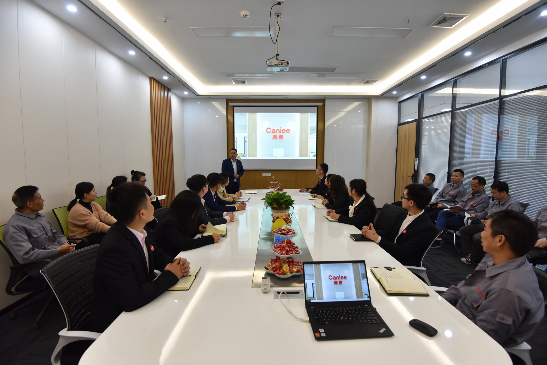 早上八時,各部門、各區域同事等全體員工早早來到了公司,在程總、冼總的陪同下,全體員工先后參觀了員工休閑區、會議室、研發室等。