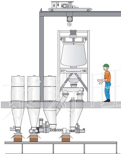 噸袋拆包輸送系統又稱為開袋卸料系統、倒袋輸送系統,按拆包輸送方式可分為:下卸料系統和上吸料系統
